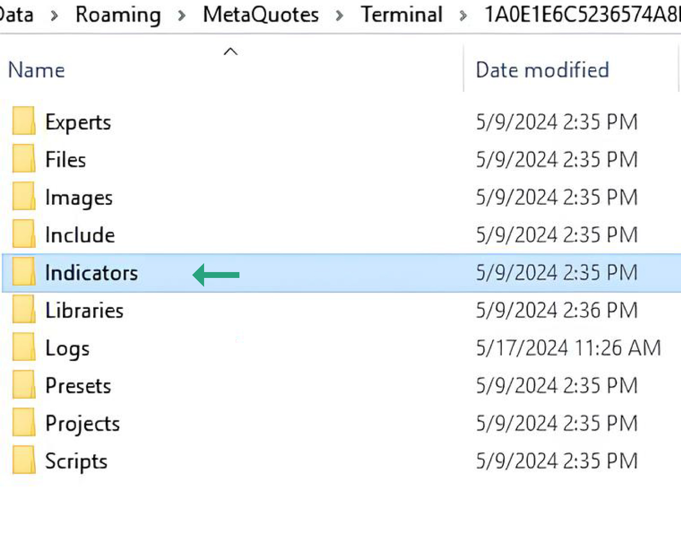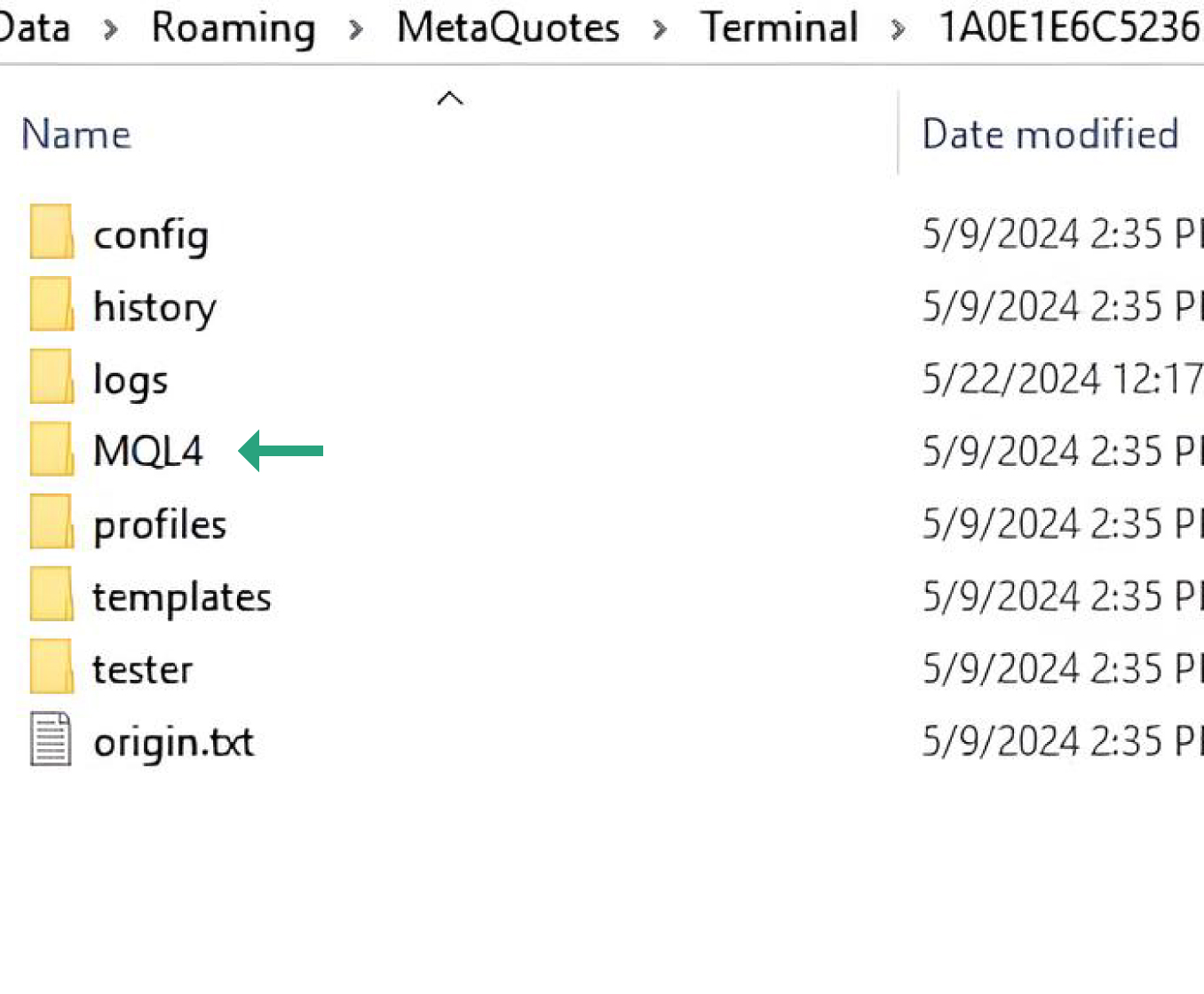 Locate the MQL4 folder and click to open.